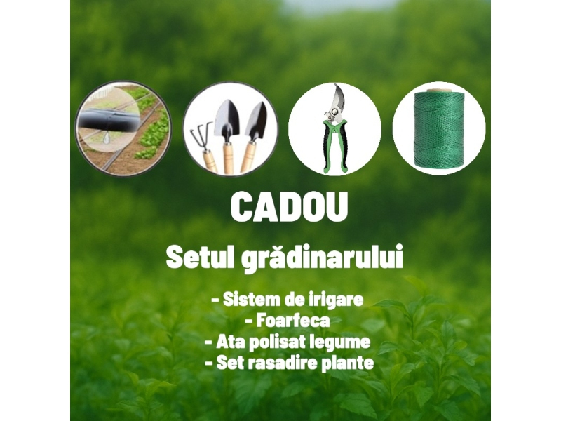 Cadou: Sistem de irigare; Foarfeca; Ata polisat legume; Set rasadire plante