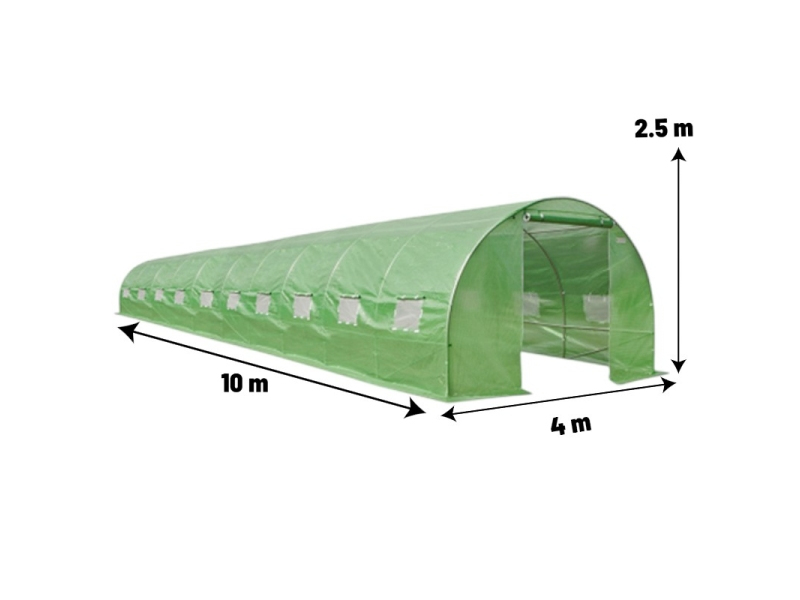 Cu dimensiunile sale extinse — 10 m lungime, 4 m lățime și 2.5 m înălțime — sera Demetra pune la dispoziție un spațiu generos pentru culturi pe rânduri, straturi înălțate sau plantații intensive. Cele 2 intrări și ferestrele laterale cu plasă de aerisire facilitează o ventilație optimă, menținând nivelul potrivit de temperatură și umiditate. Structura bine gândită, cu distanța între arcuri de 1 metru, împreună cu completarea completă pentru montaj, transformă sera într-o soluție profesională, gata de instalat și utilizat imediat.