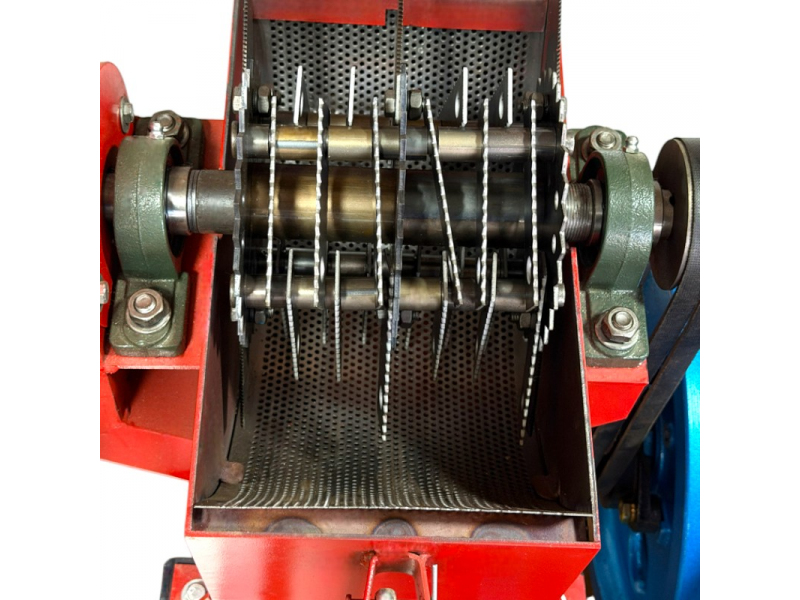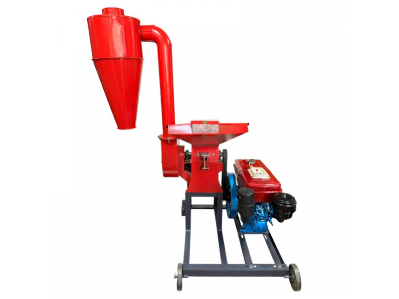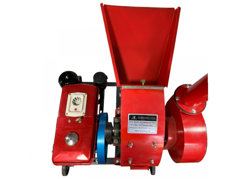 Construcția utilajului este gândită pentru productivitate ridicată, tocătorul având o capacitate de lucru de 400–600 kg/oră, în funcție de tipul și structura materialului procesat. Sistemul de ciclon integrat direcționează materialul mărunțit direct în sacul textil inclus, contribuind la colectarea eficientă a furajului și la menținerea curățeniei în zona de lucru. Utilajul este livrat cu două site metalice pentru mărunțire, permițând adaptarea gradului de tocare în funcție de necesități.