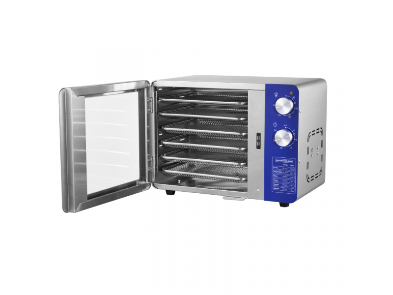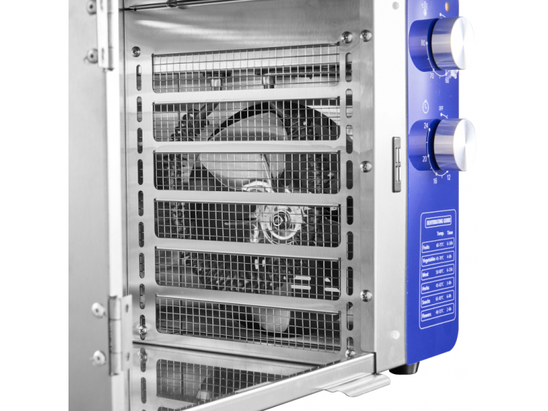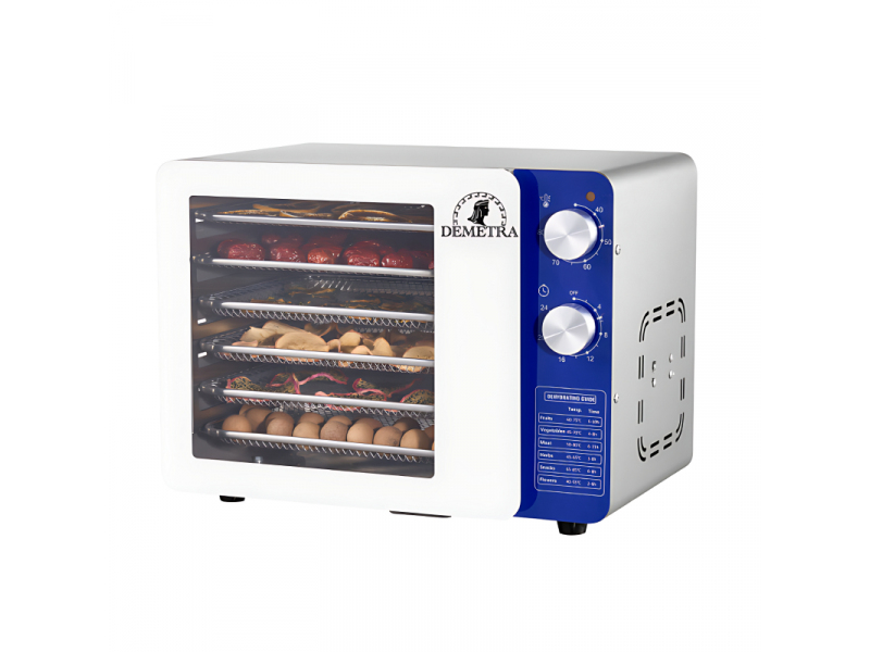 Описание: Универсальный дегидратор Demetra SS-08 — незаменимый бытовой прибор для любителей кулинарии и тех, кто хочет сохранить продукты здоровым и эффективным способом. Благодаря современному дизайну, изготовленному из пищевого нержавеющего материала, этот дегидратор не только функционален, но и эстетичен и подходит для любой кухни. Обладая мощностью 500 Вт и диапазоном температур от 30 до 75 ℃, SS-08 отличается универсальностью, позволяющей пользователям контролировать процесс обезвоживания в соответствии с типами продуктов, которые они хотят сохранить. Благодаря большому количеству уровней сушки пищевых продуктов, эта машина может обрабатывать до 3 кг основного ингредиента в течение 24 часов, что делает ее идеальной для семей или тех, кто хочет приготовить большое количество полезных закусок. Преимущества: Одним из основных преимуществ дегидратора Demetra SS-08 является простота использования благодаря интуитивно понятному механическому управлению. Кроме того, эта модель излучает низкий уровень шума, всего 50 дБ, что делает ее идеальной для использования в любое время суток,